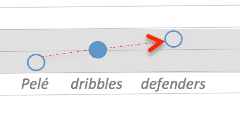 Confused? Let’s look at a simple subject-verb-object structure, as in the clause “Pelé dribbles defenders”.