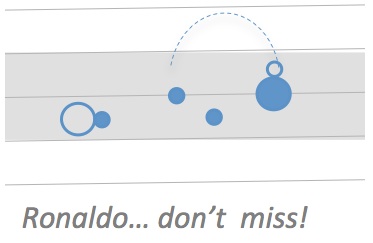 Let’s replay this in football.  Imagine the captain beautifully crossing the ball to the striker (as in the image above right): all eyes are on the captain‘s silky feet – I am thinking Andrea Pirlo …